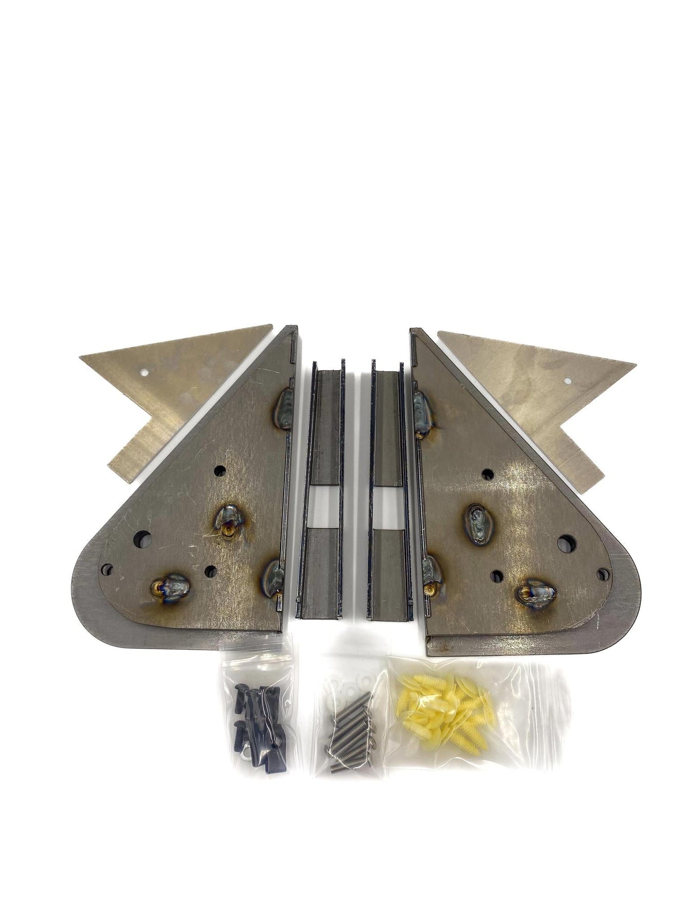 Double plate tow mirror with internal door brackets for use with '88-'98 GMC Style Tow Mirrors on your '92-'97 F-Series Fords (can be used with later 80's era body style trucks with slight modifications). This mirror kit differs due to the fact our system utilizes dual plates to help strengthen the corner of the door and reinforce the inner part of the door where the weight of the heavy tow mirror lands. One kit will do both mirrors. For more pictures and information please check out our Instagram page @obssolutions.